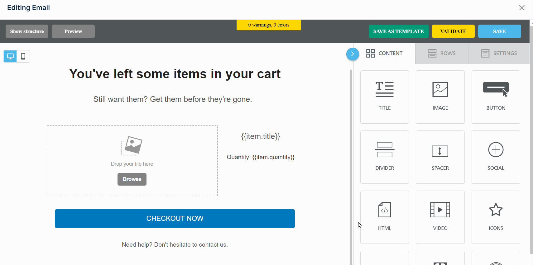 Once your code is ready, go to your email template in Amplified and add the discount code as an image or text.