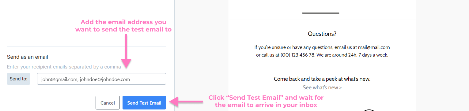 Previewing and sending test emails are crucial parts of the email marketing process. It helps you catch any problems with your content before it goes out. You will be able to see if any images are missing or if any text formatting is incorrect. You can even see which links are broken—and fix them before anyone notices! You could think of it as having a second pair of eyes reviewing your message before you send it.