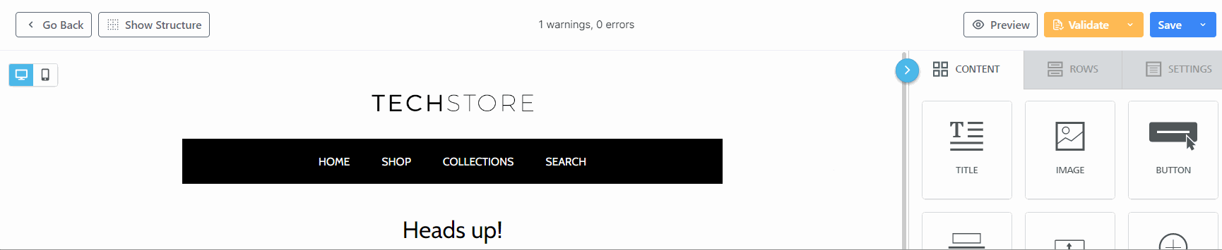 - Go to the email editor and click on the dropdown arrow beside “Validate”.